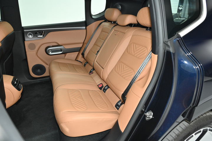 座椅的体验尤其值得一提,采用的是 Nappa 小牛皮材质,触感柔软又有支撑性,搭配 HDD 绗缝工艺,视觉上就很有质感。我身高 180cm,调整好主驾座椅后,头部还有一拳多的余量,腿部空间也很充裕。更惊喜的是后排,2900mm 的轴距带来了宽敞的乘坐空间,我坐进去膝盖离前排座椅还有两拳多的距离,完全可以轻松跷起二郎腿,就算是三个成年人同时乘坐,也不会觉得拥挤。后排的零重力座椅更是加分项,一键调节后就能躺成舒适的角度,长途乘坐时能有效缓解疲劳,这点对于经常带家人出行的人来说太实用了。