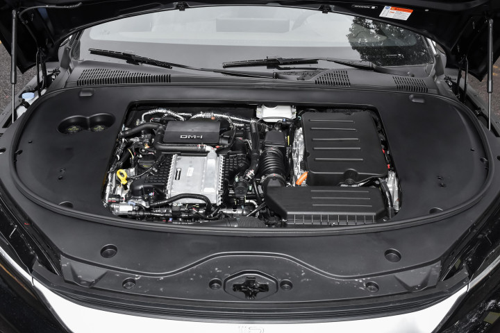 最后再来看一下动力系统,比亚迪汉DM搭载了DM-i超级混动系统,1.5T发动机+电机的插电式混合动力系统,电动机的总功率为272马力,总扭矩为315牛米,匹配上E-CVT变速箱,不仅动力很强、响应速度快,平顺性也比较出色。此外,这款车的纯电续航为125km,亏电油耗3.8L,日常用车完全可以采用纯电模式,基本上就告别加油了,用车成本很低。此外,新车还支持6kW对外放电功能,前后悬架分别为麦弗逊式独立悬架和多连杆式独立悬架。