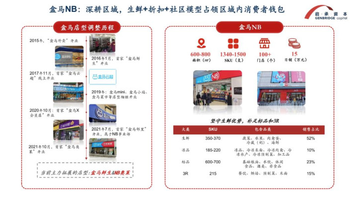 除了比优特和胖东来这两种调改思路,以及我们已经讨论的相对充分的小型店和超大型会员店之外,以盒马NB为代表的中型业态的崛起,同样是一个值得关注的解法。尤其是在美团快乐猴下场,从价格到货盘结构都直接对标盒马NB之后,这个业态开始受到更多人的关注。